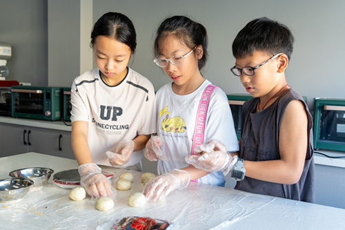 现场设置了“蛋黄酥制作”、“月满华裳”汉服制作以及“非遗锡纸浮雕”三个体验项目。通过沉浸式、互动式的文化体验,孩子们不仅亲手制作中秋传统美食,变身“烘焙小达人”,还在汉服制作中感受传统服饰之美,更在非遗锡艺的创作中打造出一幅幅精美的锡纸浮雕作品。活动不仅锻炼了孩子们的动手能力与创造力,也加深了他们对中华优秀传统文化的认知与热爱。